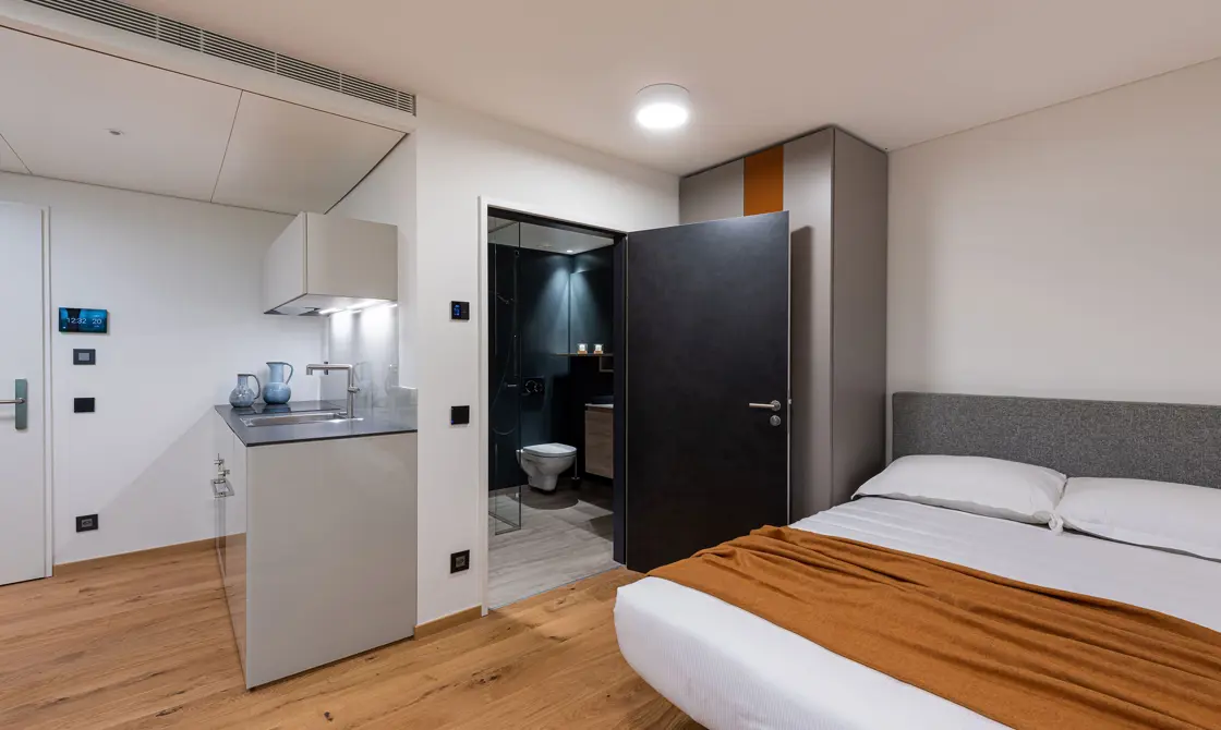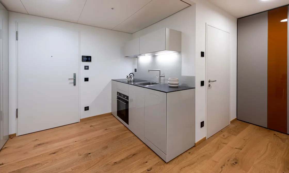 All unsere 16 Apartments mit 35 m² Grösse wurden von LAGO mit Möbeln im zeitgenössischen Design und maximaler Liebe zum Detail eingerichtet.